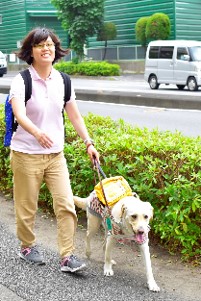 ベリーとこれから一緒に歩かれる方は、盲導犬使用歴8年、ベリーで2頭目となる若い女性です。平日は毎日歩いて通勤、退勤後や週末は趣味の水泳等の余暇活動へと非常に行動範囲が広く、ほとんど家にいないほど活動的な方です。