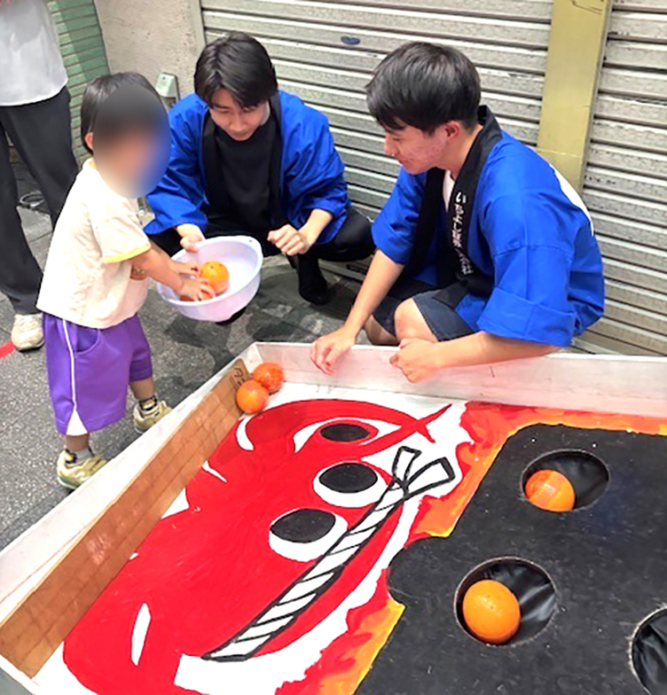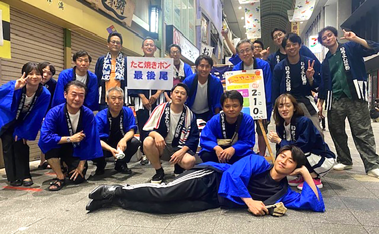 伏見支店からは10名のメンバーが揃いの法被に身を包み、ゲーム運営のボランティアとして、「たこ焼き投げぽん」(たこ焼きに似たボールを投げて穴に入れるゲーム)の進行のお手伝いをさせていただきました。ゲームの前には長蛇の列が出来るほどの大盛況で、「やった~!」「よかったね~!」といった元気な声が響きます。参加された皆さまからも「いちよしさん、暑い中ご苦労様」とお声を掛けていただき、地域の皆さまにも喜ばれていることを実感しました。