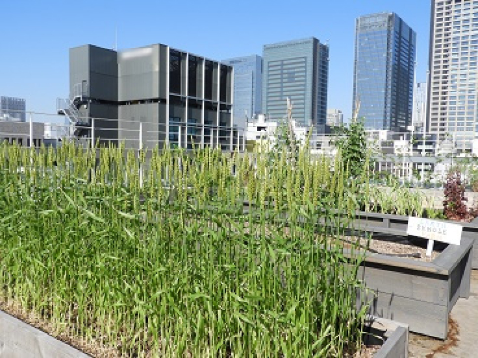 日本橋茅場町に生まれた屋上菜園「Edible KAYABAEN」と提携し、本社ビルの東京証券会館屋上にある屋上菜園が利用可能になりました。「Edible KAYABAEN」は食と農・子どもたちのための自然学校などを運営しており、今後は屋上菜園や地域住民を交えたイベントの実施なども企画・検討しています。また、屋上庭園も設置されており、社員が自由に使用できる憩いの空間になっています。