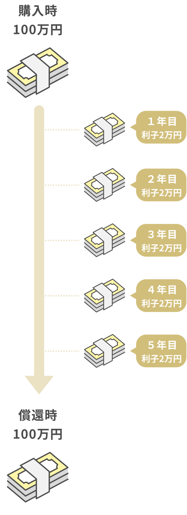 債券を保有している満期までの期間は、額面金額に対して決められた利息が定期的に支払われます。