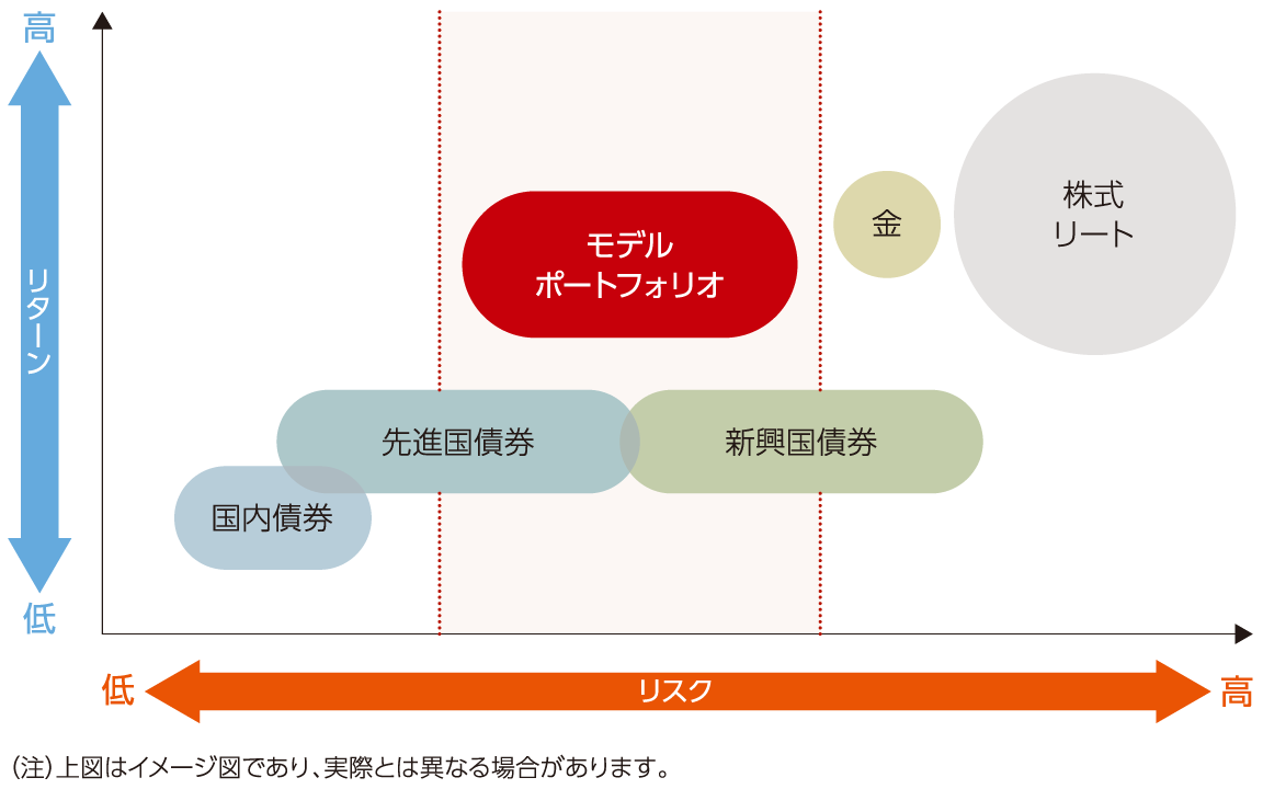 安心して任せていただくために、リスクは先進国債券と新興国債券並みとしています。