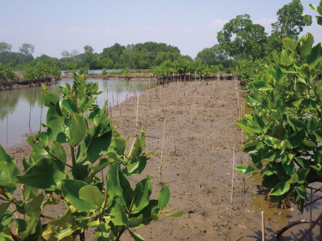 国際環境NGO「FoE Japan」への寄付を通じ、長年にわたりマングローブの植林・保全活動を支援しています。ブルーカーボン・シンク(CO2の吸収源となる海洋生態系)のひとつであるマングローブの再生は、ネガティブ・エミッション(大気中のCO2を貯留し除去すること)に貢献するものです。