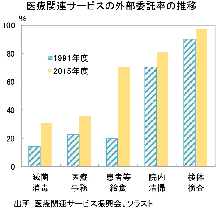 神様:その通り。医療事務は、いまだ外部委託率が3割程度と低い分野です。逆に言えば、この分野の事業者は成長余地が高いとも言えます。医療器具・医療機器の滅菌業務も外部委託率が低いので代行事業者にとっては成長分野です。