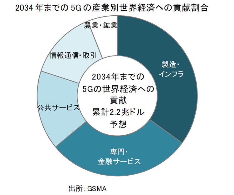 神様:そうです。携帯通信事業者の業界団体であるGSMAは、5Gが2034年までに世界経済へ2.2兆ドルの貢献をすると予想しています。