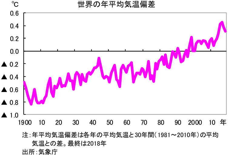 T:地球温暖化で世界的に気温が上昇しているのは間違いないよ。気象庁によると、世界の年平均気温は1990年以降ずっと上がり続けているんだ。