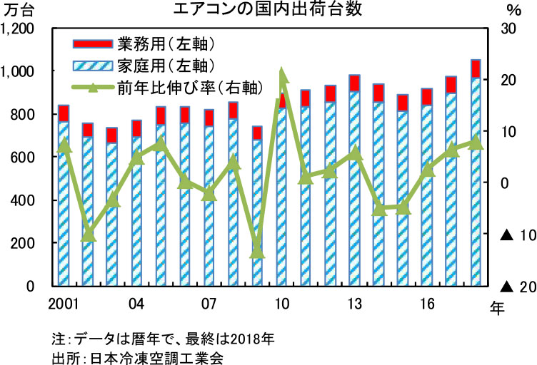 T:もちろん。エアコンの国内の出荷台数は増え続けていて、2018年には1,000万台を突破したんだ。家庭用はもちろん、体育館や施設に設置する業務用エアコンも堅調に伸びているよ。