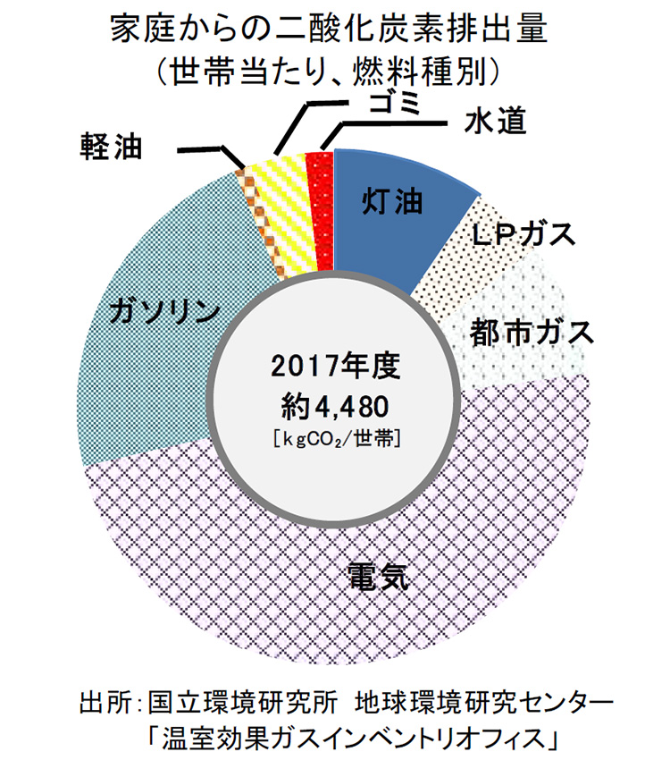 神様:長く、そして頻繁に使うものは、そうありたいですね。逆にそういった製品を作る企業が評価されます。「ESG投資」についてもご存知だと思います (第71話 ESG投資って何?(その1)参照) 。ところで、家庭からの二酸化炭素の排出量で一番大きい割合を占めるエネルギーは何だと思いますか?
