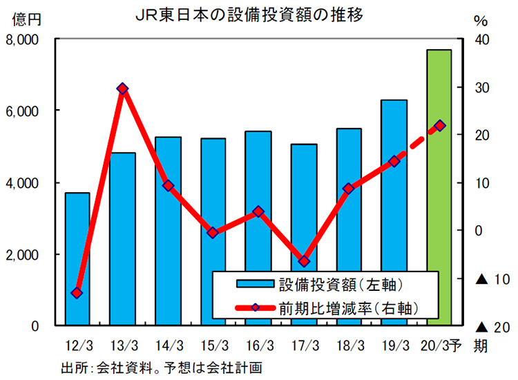 T:それはそうだよね(笑)。例えばJR東日本では、「変革2027」という新しいビジョンを掲げて、これまでの事業モデルを改革しようとしている。技術革新で鉄道の進化を図るのはもちろんだけれど、2017年から2027年の10年間では、人々の生活に関わるサービスや、ITや電子マネーといった事業領域を拡大しようとしていて、2017年以降、JR東日本の設備投資額は右肩上がりで伸び続けているんだよ。