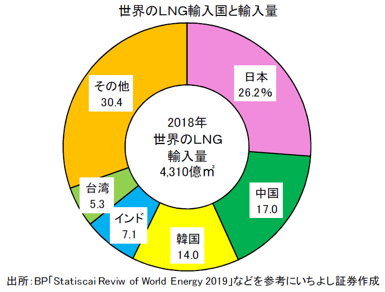 T:実現は無理でも近づくことはできるよ。ただし、LNGは石炭よりコストがかかるんだ。日本は島国だから、天然ガスの産出国と陸続きになっていないし、産出国からのパイプラインもないから、天然ガスを運び入れる場合はマイナス160度くらいまで冷却して液化して、船で運搬している。2018年のLNGの輸入量は、日本が全体の26.2%と世界一だったんだよ。