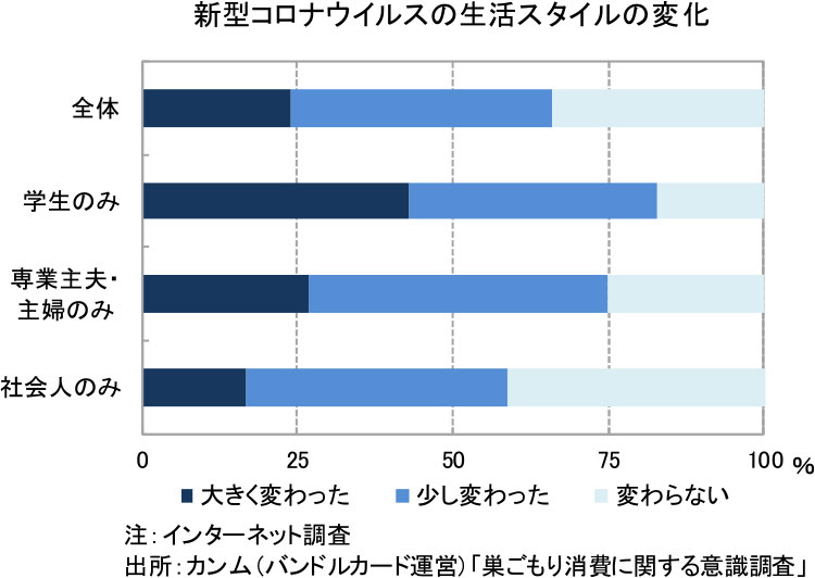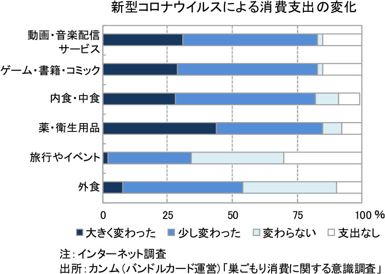 神様:多くの人々は、平日・休日に関わらず、自宅で過ごすようになりました。それによって、消費支出が変化しました。自宅で過ごす時間が増えたことで「巣ごもり消費」が拡大しています。室内で動画やゲームを楽しんだり、食事も宅配サービスを利用したり、買い物もインターネット通販を利用するなど、お金の使い方や使い先が変化しています。