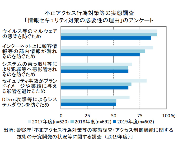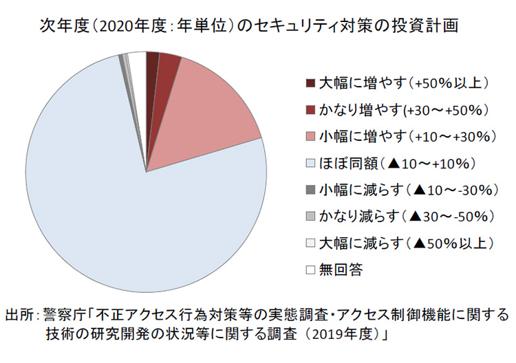神様:そうなのです。一方で、警察庁によれば、2020年度のセキュリティ対策の投資計画として、前年度と「ほぼ同額」との回答が多数を占めました。デジタル投資が着実に進む一方で、セキュリティ対策がきちんと追いついているのかも気になるところです。