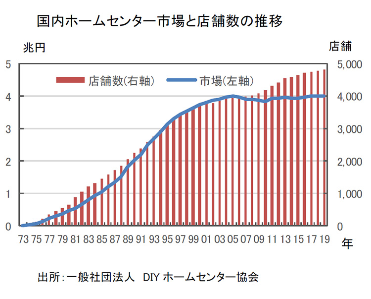 T:ホームセンターは東京近辺ではあまり見られませんが、地方では郊外に多く見られますよね。地方を中心に少子高齢化がさらに進むことを考えると、市場規模の横ばいは納得できます。
