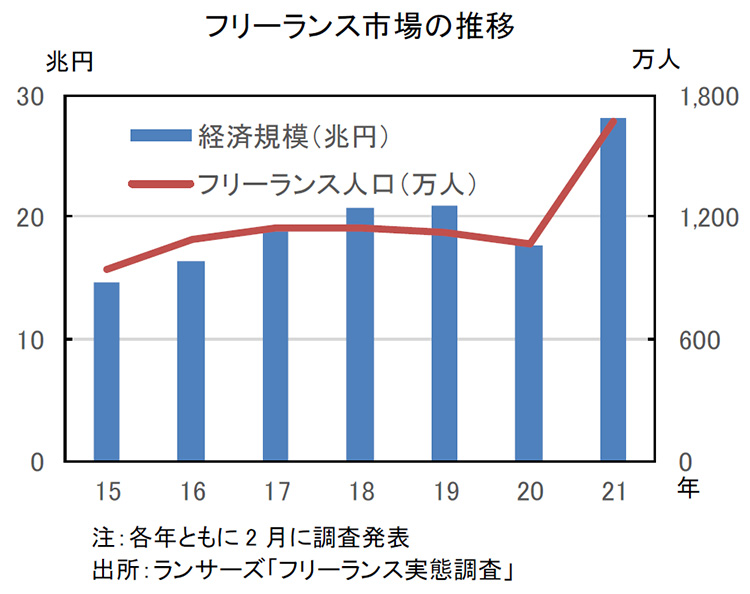 神様:スキルシェアの時代に伴い働き方もより多様化していきますが、今、フリーランス市場が急伸しているのです。