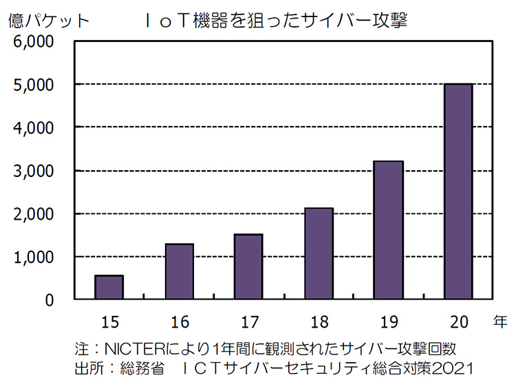 神様:在宅勤務では特に、ネットワーク端末、つまり在宅で使用するパソコンにおけるセキュリティ不足が問題となっています。インターネット経由で行うオフィスネットワークへのアクセスや、私用端末の利用などへのセキュリティ対策が最大の課題です。今後は、5Gの活用が進み、IoT機器の利用が拡大することが予想されます。ネットワークセキュリティに対する重要性はさらに高まることになるでしょう。実際に、IoT機器を狙ったサイバー攻撃も近年は急速に伸びています。