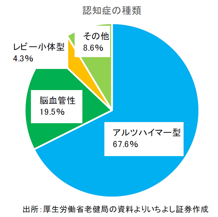 神様:はい。認知症の種類別では、脳の神経細胞の変性や脱落により発症するアルツハイマー型が全体の67.6%を占めます。その他には、脳血管障害により発症する脳血管性認知症が19.5%、脳の広い範囲に「レビー小体」という特殊なたんぱく質が生じることにより発症するレビー小体型認知症が4.3%を占めます。根本治療については研究途上ですが、アルツハイマー型や脳血管性認知症は、高血圧、糖尿病、高脂血症などの生活習慣病と関連があることがわかってきました。