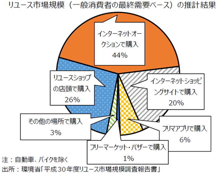 神様:その通りです。コロナ禍では、主にインターネット取引が伸びたと言えるでしょう。インターネットオークションやフリマアプリなどのCtoCネット取引では、自分で出品し、自由に値付けして販売できることから多くの利用者を生み、現在はリユース市場規模の4割を占めています。一方で、実店舗はインバウンド需要の縮小などにより販売は不振でした。