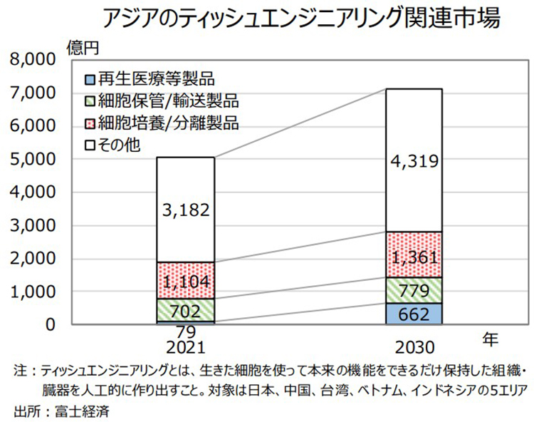 神様:もちろん。日本では再生医療の産業化や臨床応用が進んでいますから、その可能性はあるでしょう。しかし、中国や台湾では国家規模で開発強化を図っていますし、ベトナムやインドネシアでも細胞を用いた各種研究が増加しています。アジア各国でティッシュエンジニアリング市場が盛り上がりを見せています。