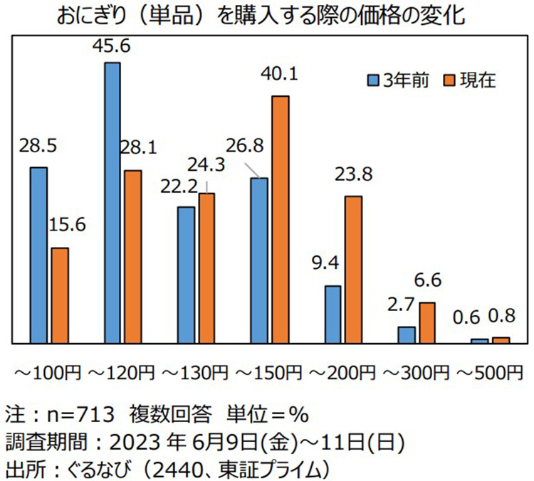 神様:その通りです。おにぎり単体で見ても、3年前と比較すると相対的に高価格帯の購入が増えています。すなわち、おにぎりの高級化は収益性向上にも繋がっています。