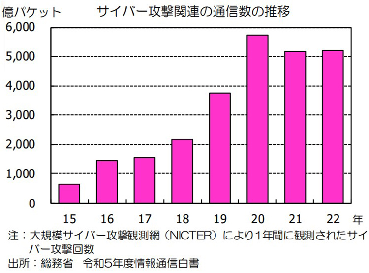 T:確かに、2020年以降のサイバー攻撃関連の通信数を見ると、個人の対策もしっかり取り組まなければ危ないという意識になりますね。