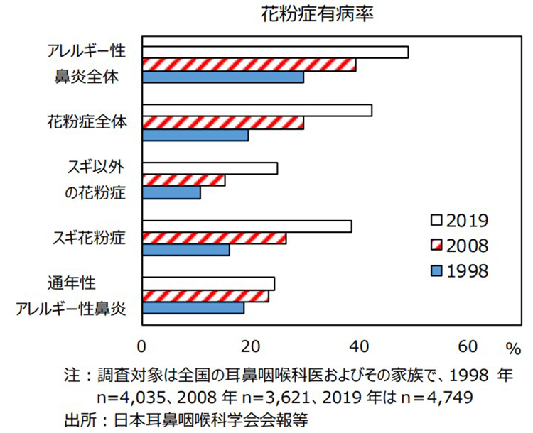 T:昨年と同じ程度という感じですね。しかし、花粉症の人は年々増えているような気がするのですが、実際のところはどうなのでしょうか?