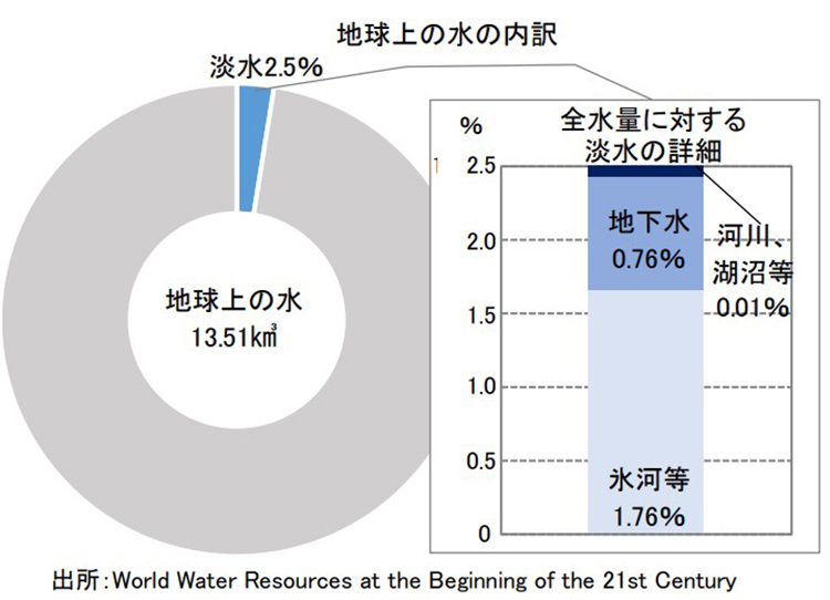 T:地球上の水の多くは海水ですよね。人が利用しやすい水は風呂桶1杯分くらいでしょうか。