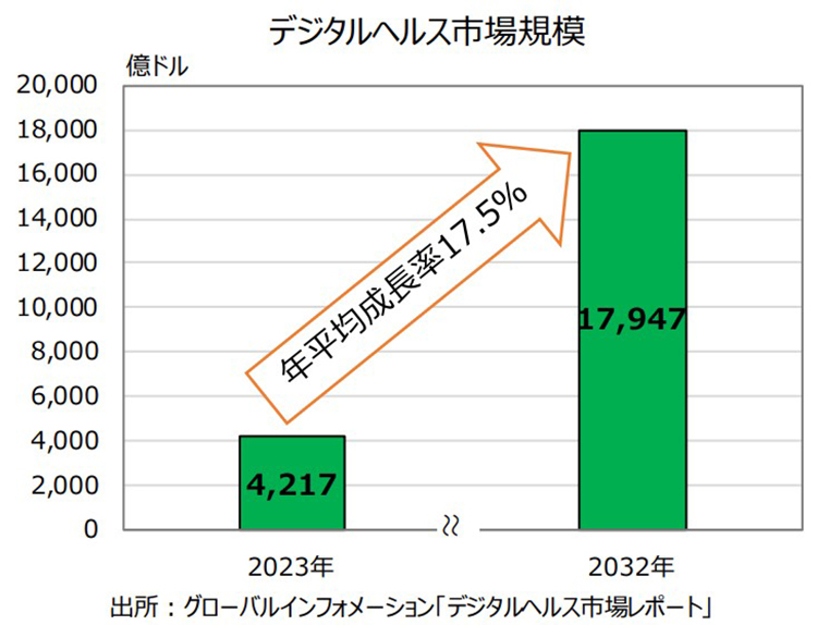 神様:その通りです。デジタルヘルスには、遠隔医療、モバイルヘルスアプリ、ウェアラブルデバイス、そして電子カルテの活用などが含まれます。デジタルヘルス市場は2032年にかけて年平均成長率17.5%で成長すると予測されています。2024年の診療報酬改定では、医療DXも大きなポイントのひとつとなりました。まさに今、デジタル技術によって医療のあり方が大きく変化していく時であると言えるでしょう。