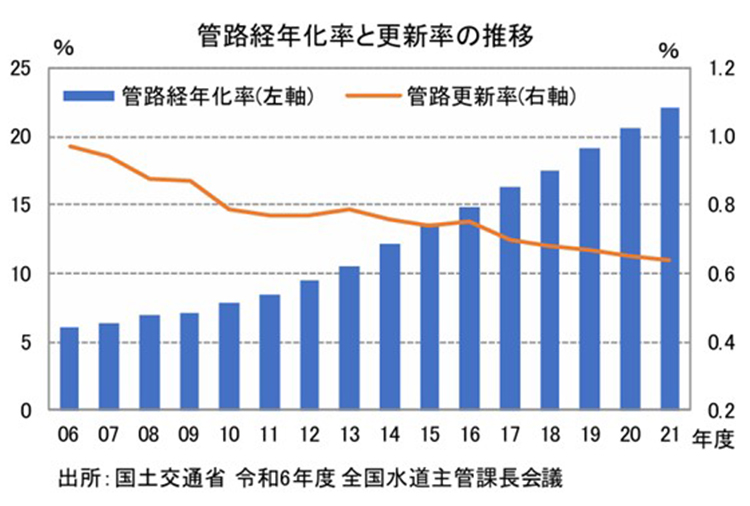 T:全国の水道管で法定耐用年数を超えた水道管が増え続けている、ということですね。