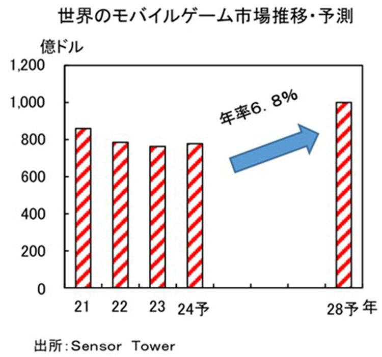 神様:しかし一方で、今後の世界のモバイルゲーム市場は復調が見込まれています。コロナ禍の巣ごもり特需でモバイルゲーム世界市場は2021年に過去最高収益となり、その後は特需減退により収益も減少しました。2024年以降では回復が見込まれており、2028年まで年率6.8%の成長を続けるとの予測もあります。