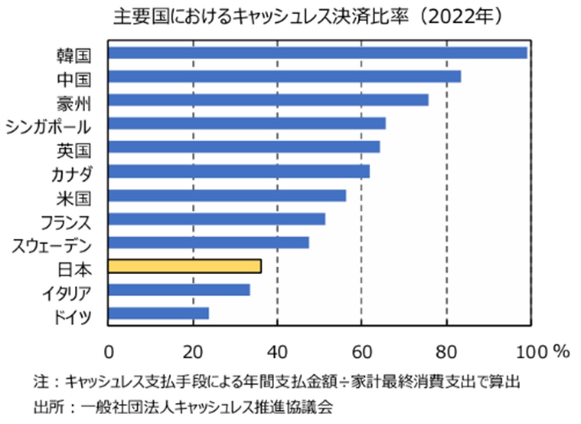 神様:しかし、国際比較で見ると日本はいまだキャッシュレス後進国です。一般社団法人キャッシュレス推進協議会が公表した2022年の世界主要国におけるキャッシュレス決済比率を見ると、トップは韓国で99%がキャッシュレス決済です。その次に中国で83.5%、さらにオーストラリアが75.9%と続きます。英国、米国やフランスも50%以上です。