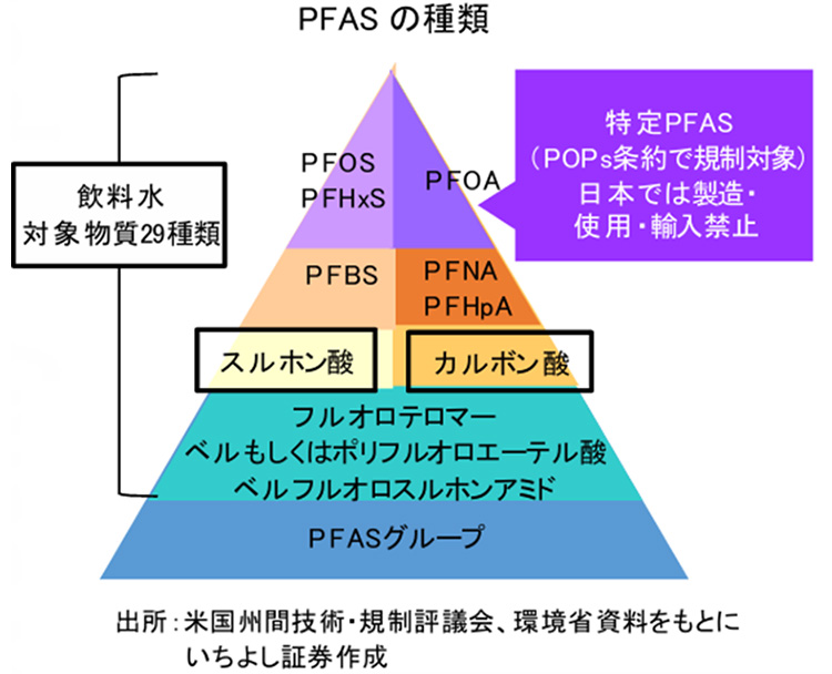 神様:最近は井戸水で高い濃度のPFASが検出された報道も目立ちます。今後の対応が注目されるところです。国連のPOPs条約(残留性有機汚染物質に関するストックホルム条約)では、「PFOS」、「PFOA」、「PFHxS」などを特定PFASと定め、廃絶・制限の対象としています。今後さらにPOPs条約による規制対象が拡大する可能性も考えられるでしょう。