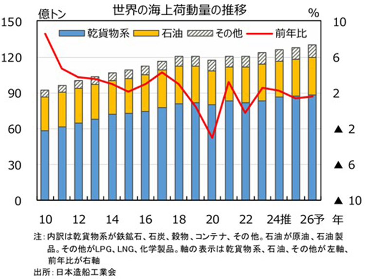 神様:中東情勢の緊迫化の他に、そもそも世界的な荷動きが増加していることも要因に挙げられます。世界の海上荷動量は年々右肩上がりで増加を続けています。米国の関税政策が荷動きに影響する懸念はありますが、船舶需要への影響は限定的と見られます。現在、世界各社の新造船手持工事量は竣工量の4年分程度あると見られています。船舶需要がタイトな状況はしばらく続くでしょう。