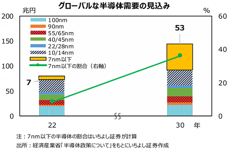神様:経済産業省によれば、2022年では7nm以下の半導体の需要は7兆円でしたが、2030年には53兆円に拡大すると予測されています。今後も生成AIが半導体の微細化をけん引していくでしょう。